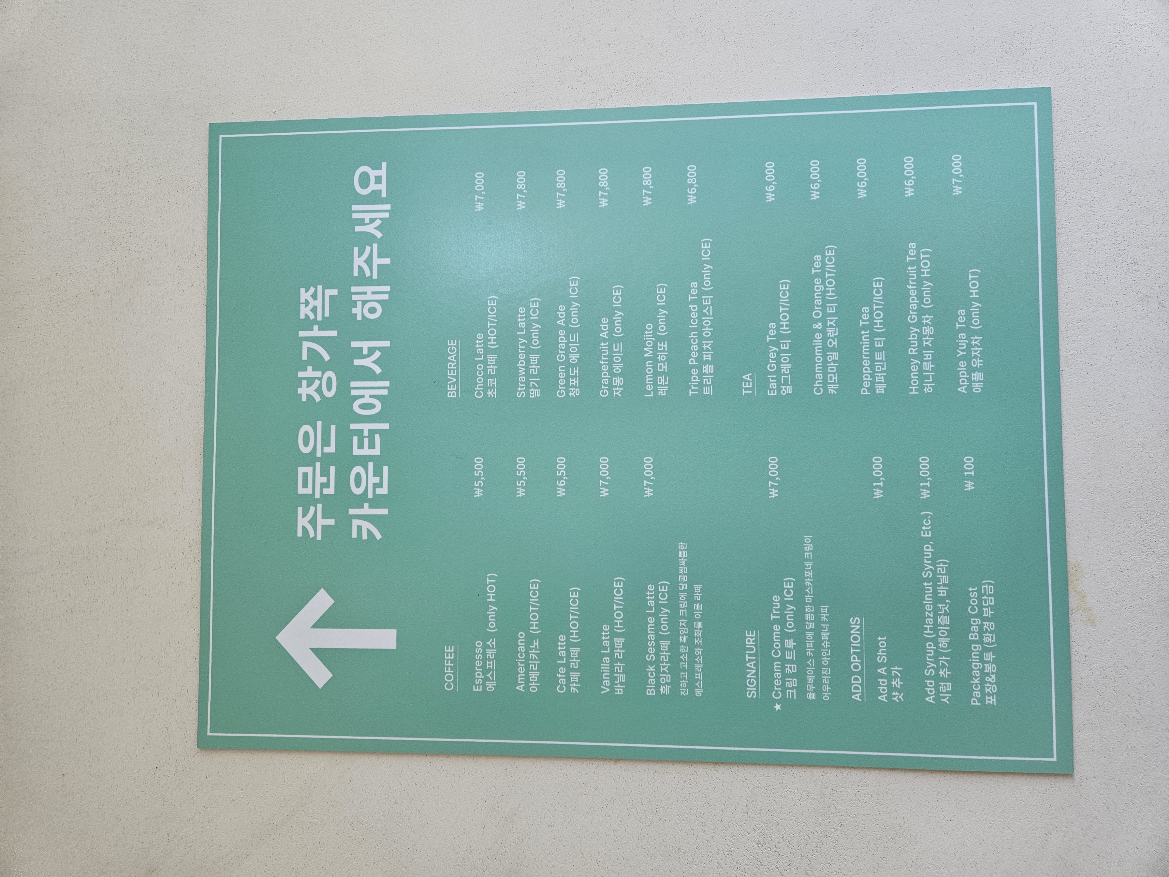 메뉴는 위와 같습니다!