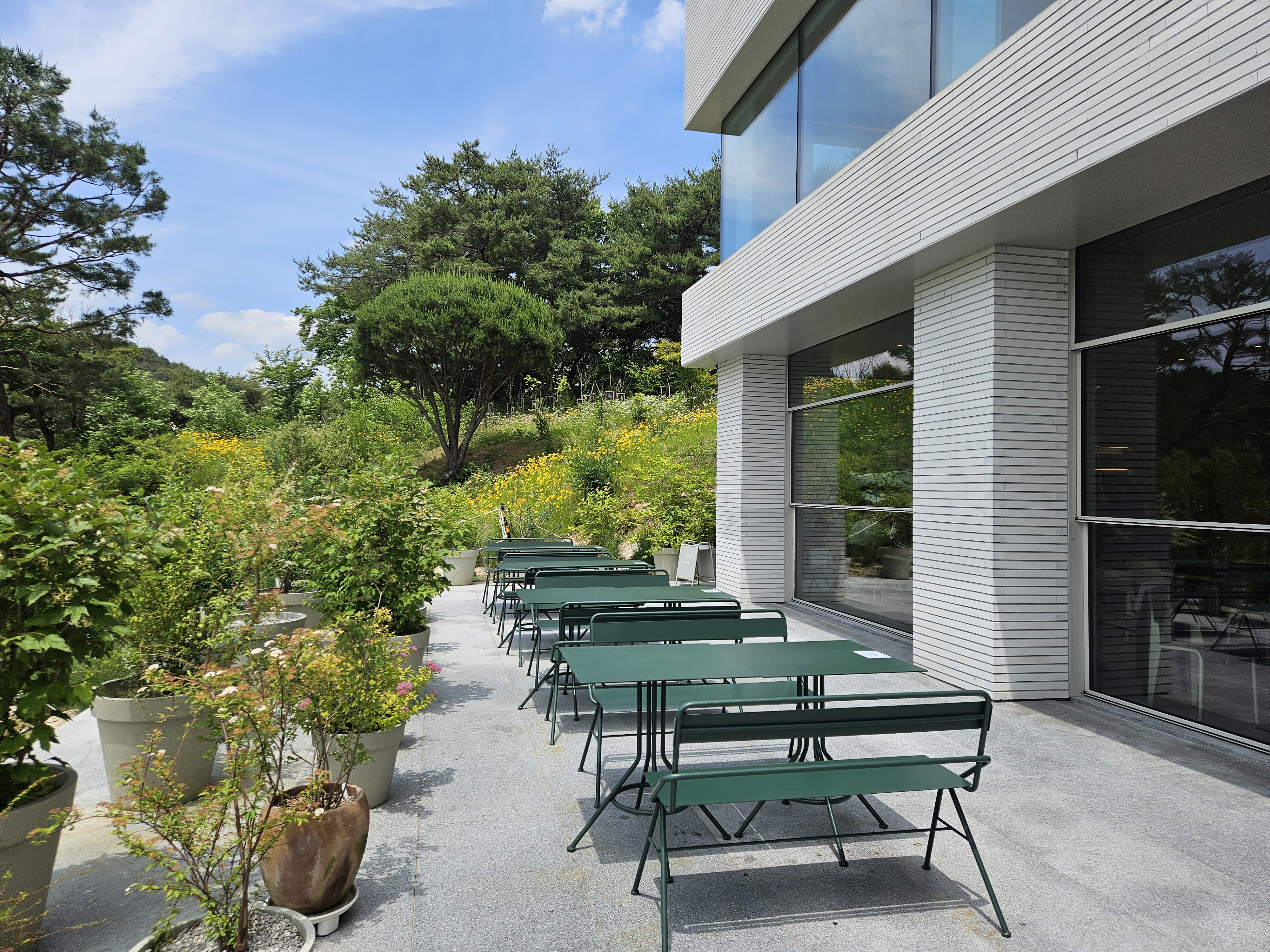 넓은 유리창으로 밖에 푸릇한 나무들도 볼 수 있어서 굳굳