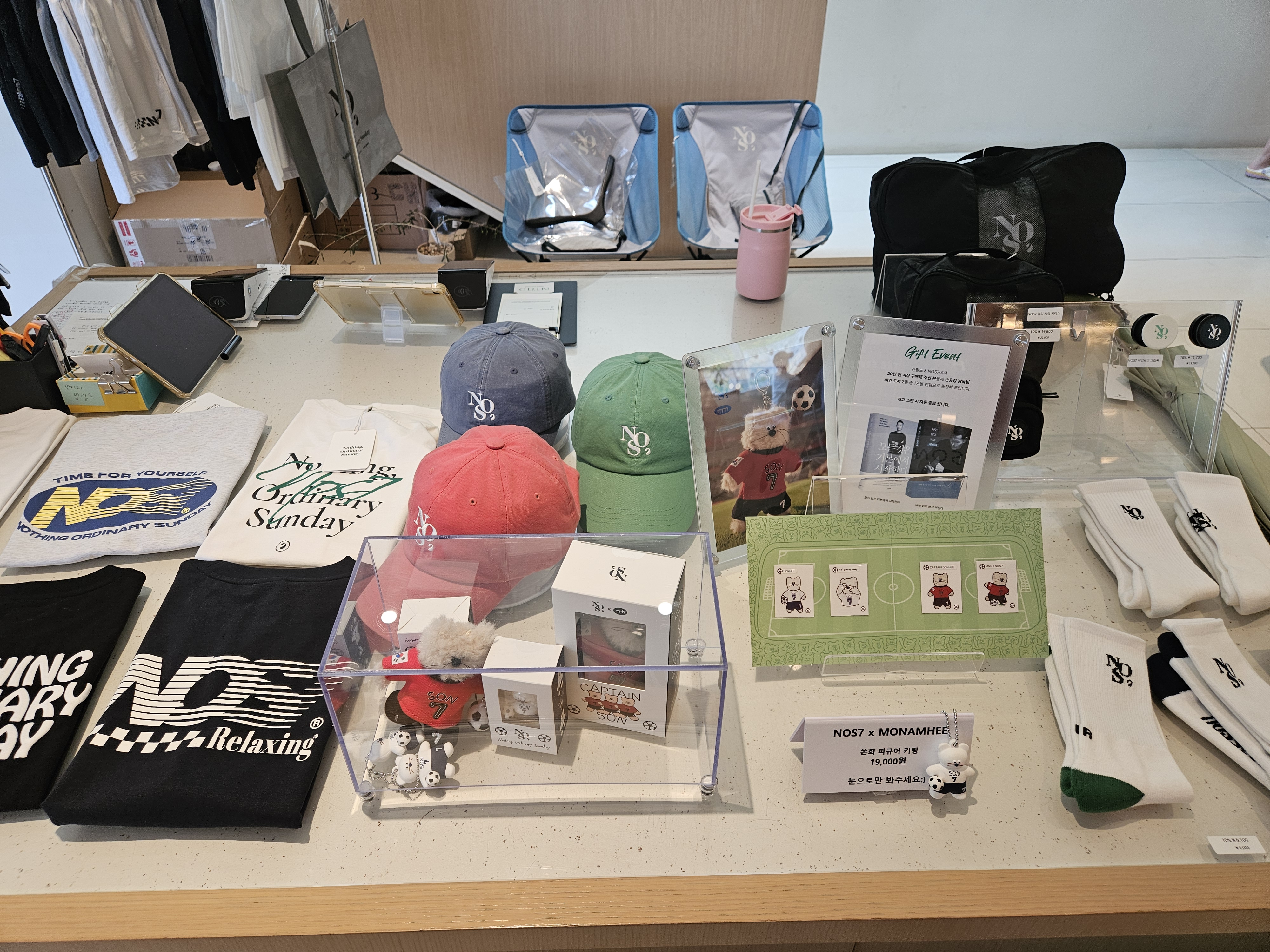 손흥민 브랜드인 NOS7 각종 의류들도 판매 중이었습니다