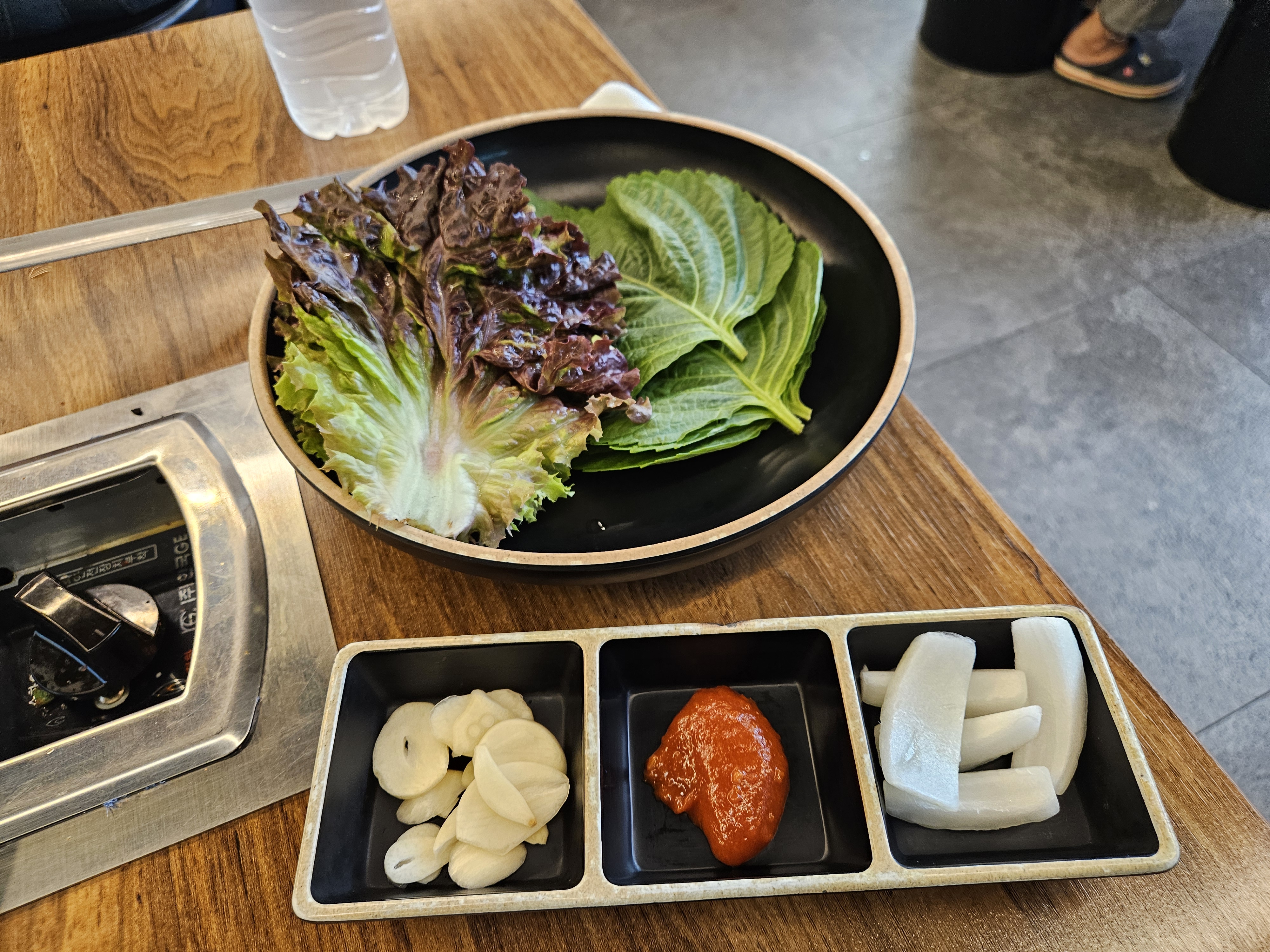 물김치와 열무김치, 쌈채소, 마늘, 쌈장, 마늘