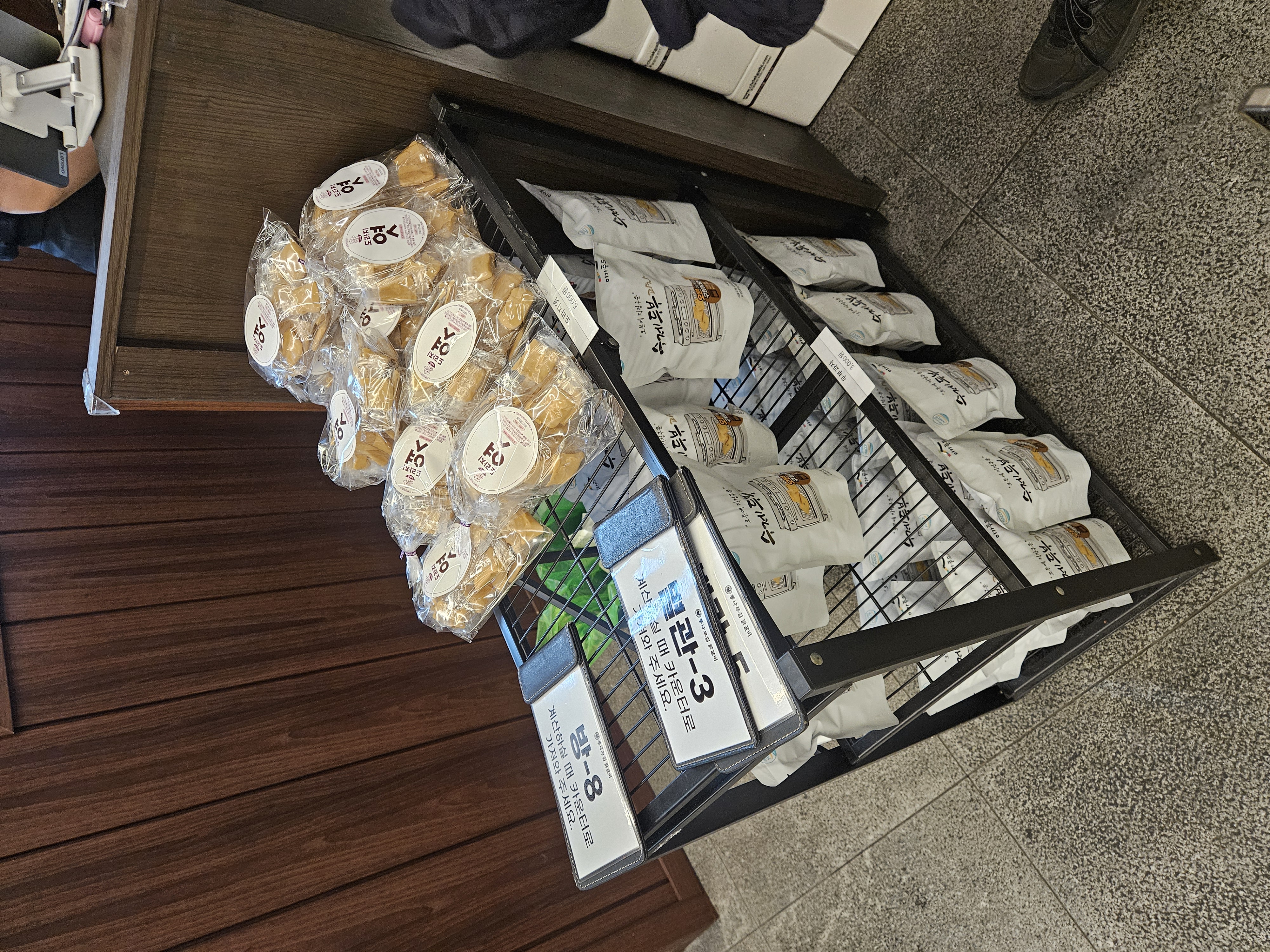 결제하는 카운터 옆 엿과 과자가 판매 중이니