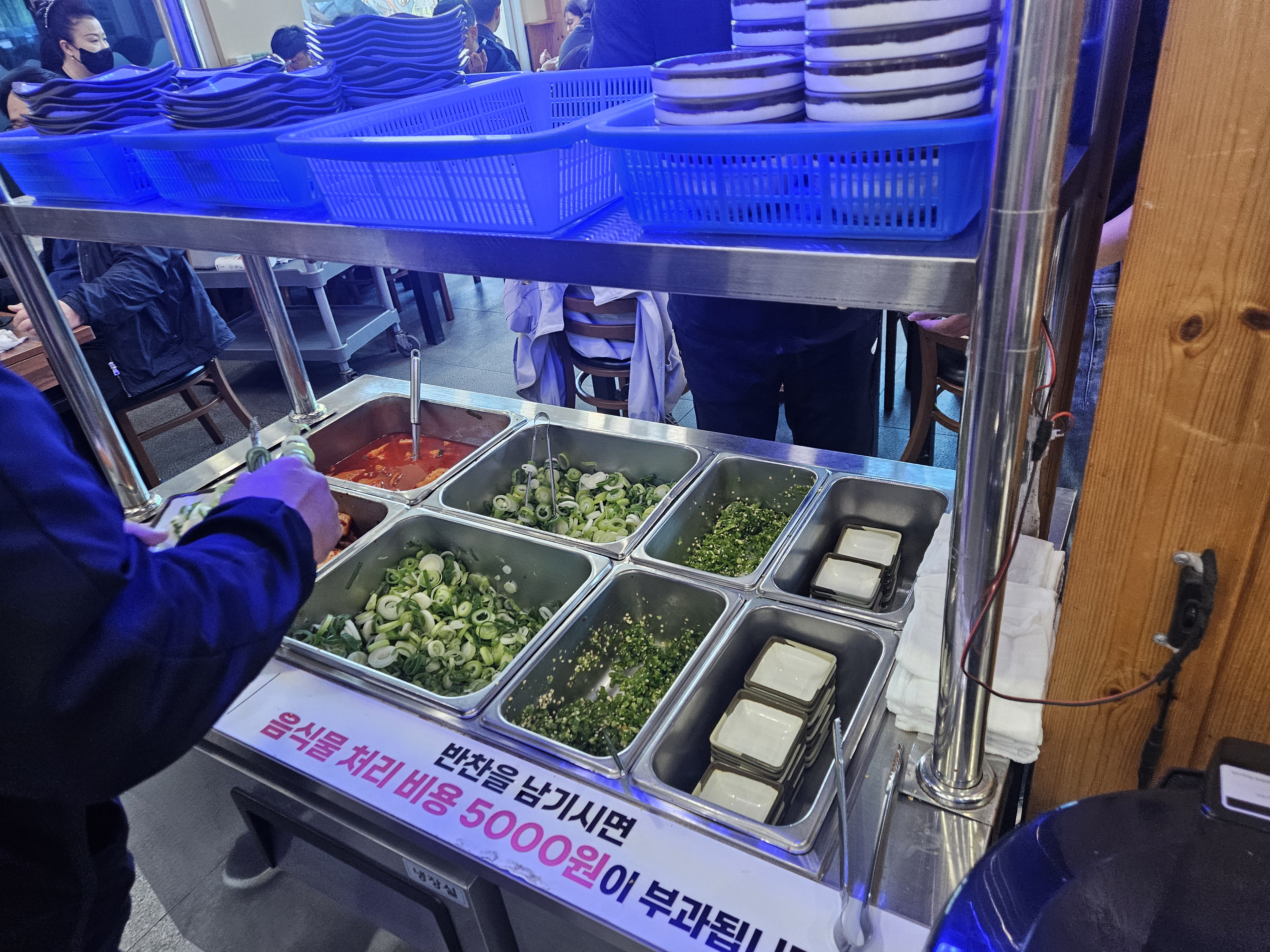 반찬을 남기면 5천 원이 부과되니 먹을 만큼만 담아가세요~