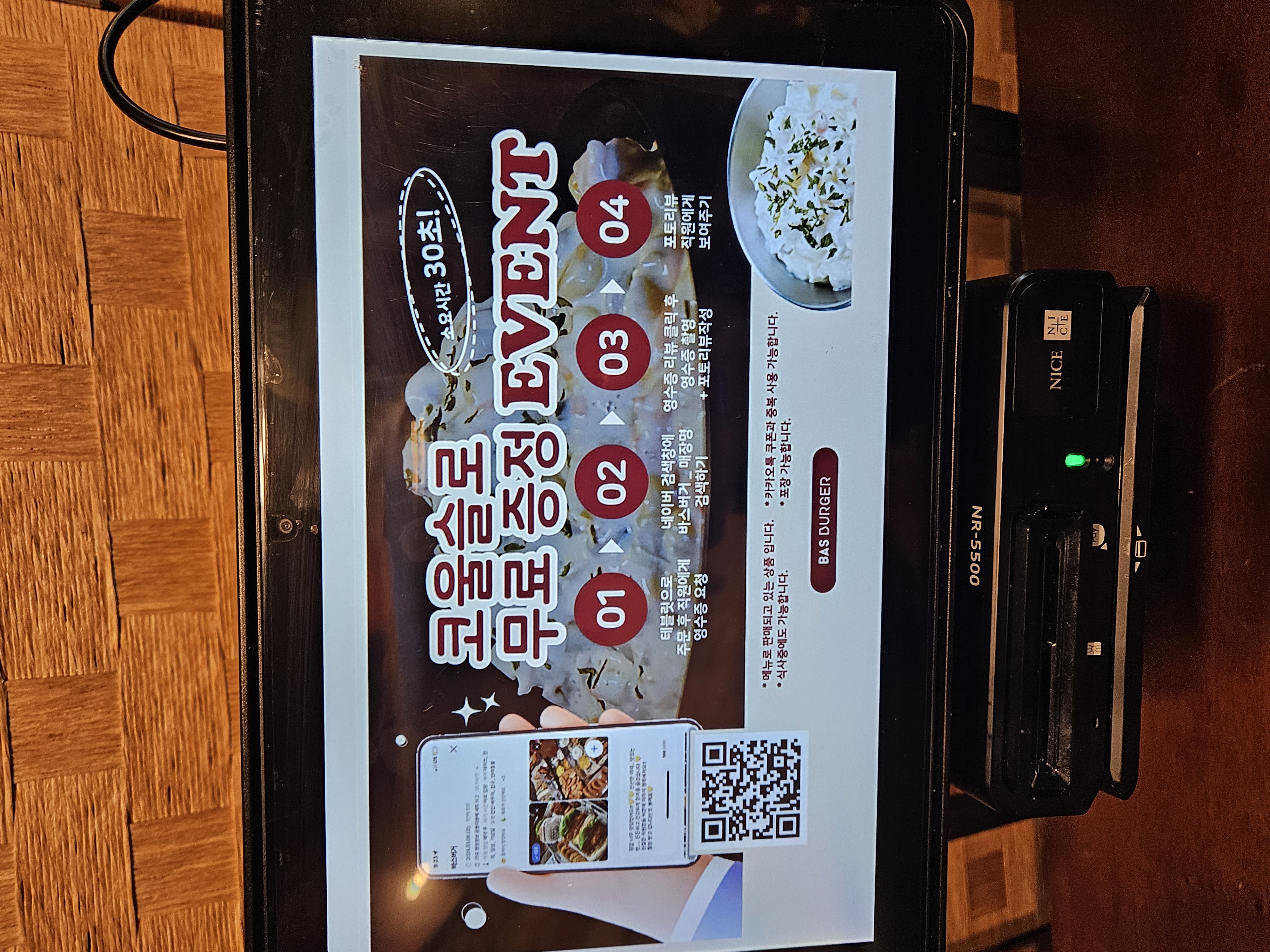 음식 주문하고 기다리다 음식이 나오면 태블릿에 준비됐다고 뜬다!
