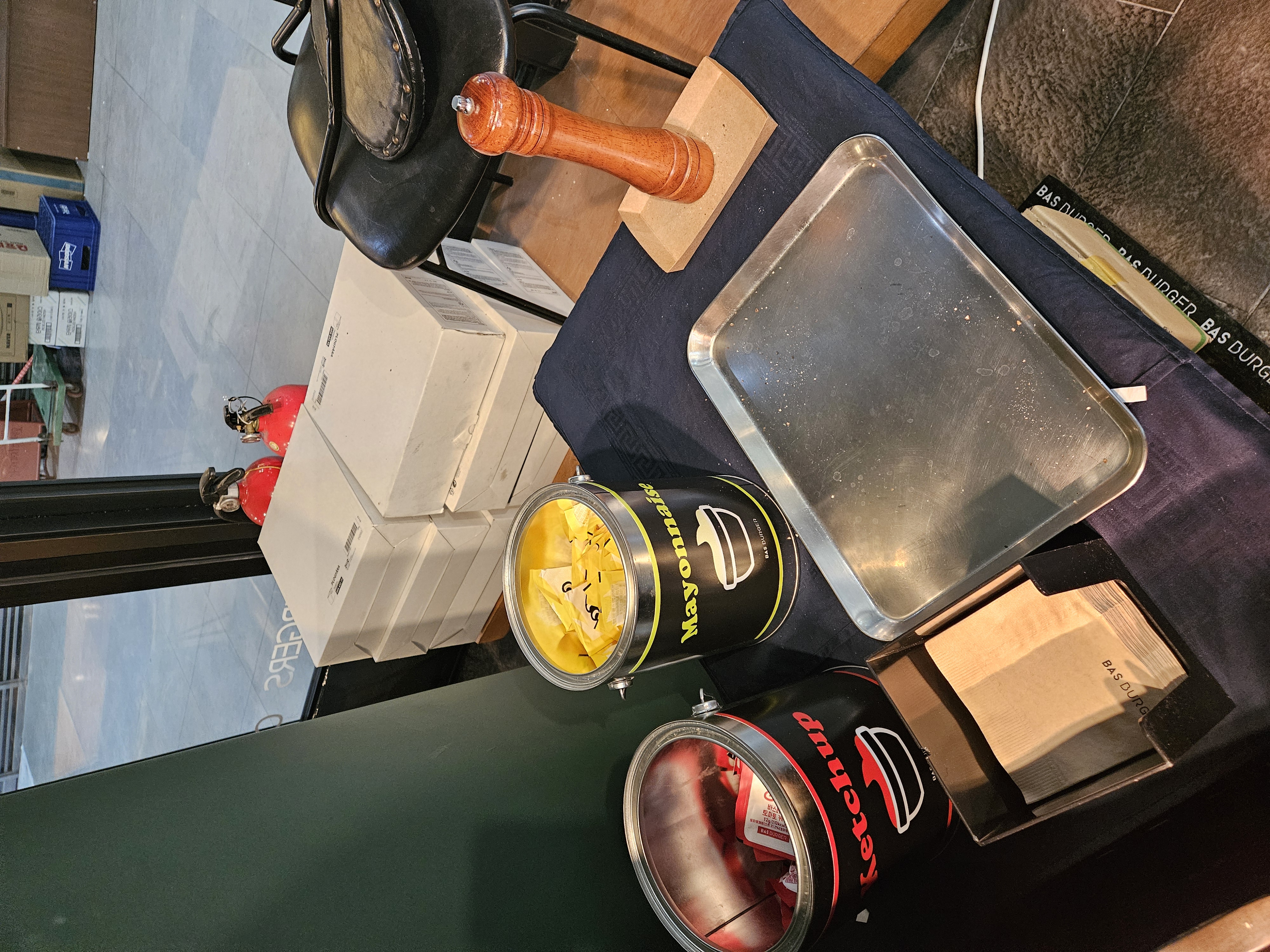 그리고 그 옆에는 케첩, 마요네즈, 후추가 구비되어 있습니다