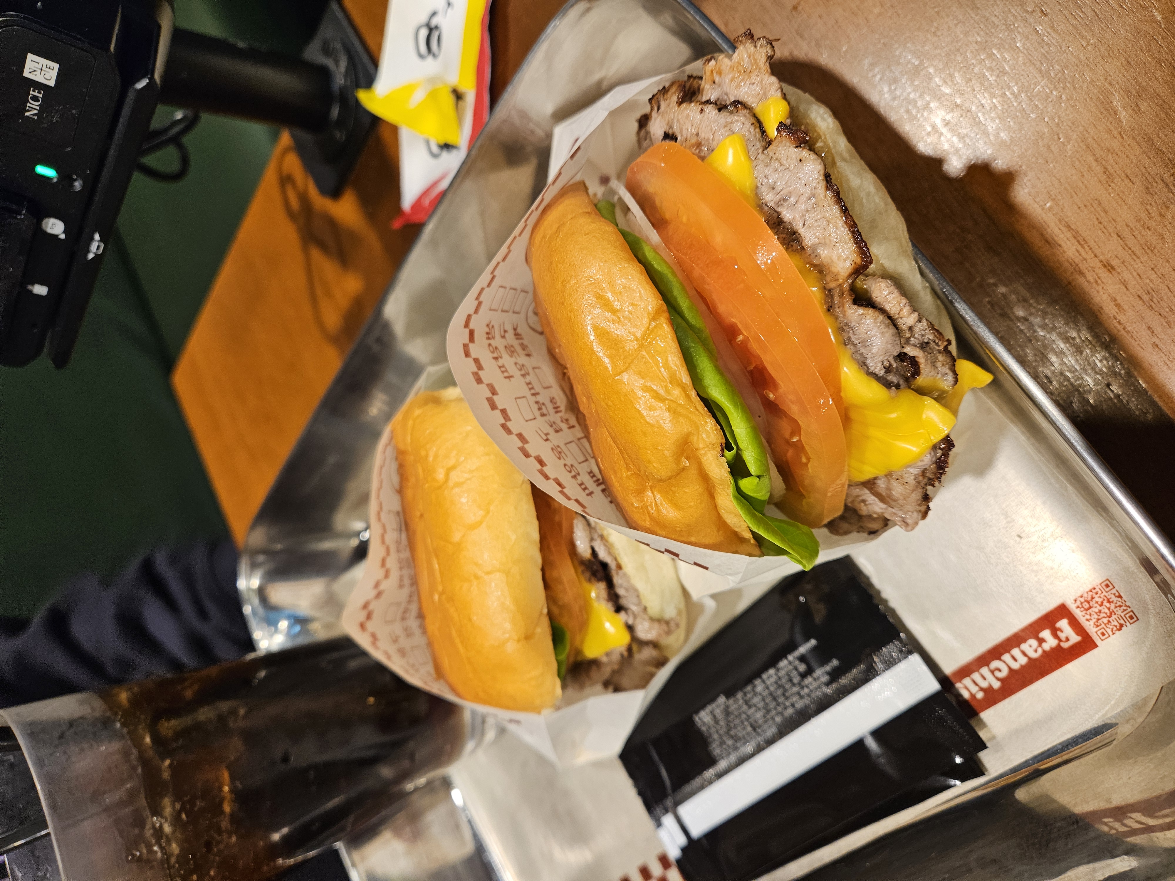 저는 더블 주문해서 패티가 2개 들어가 있고,