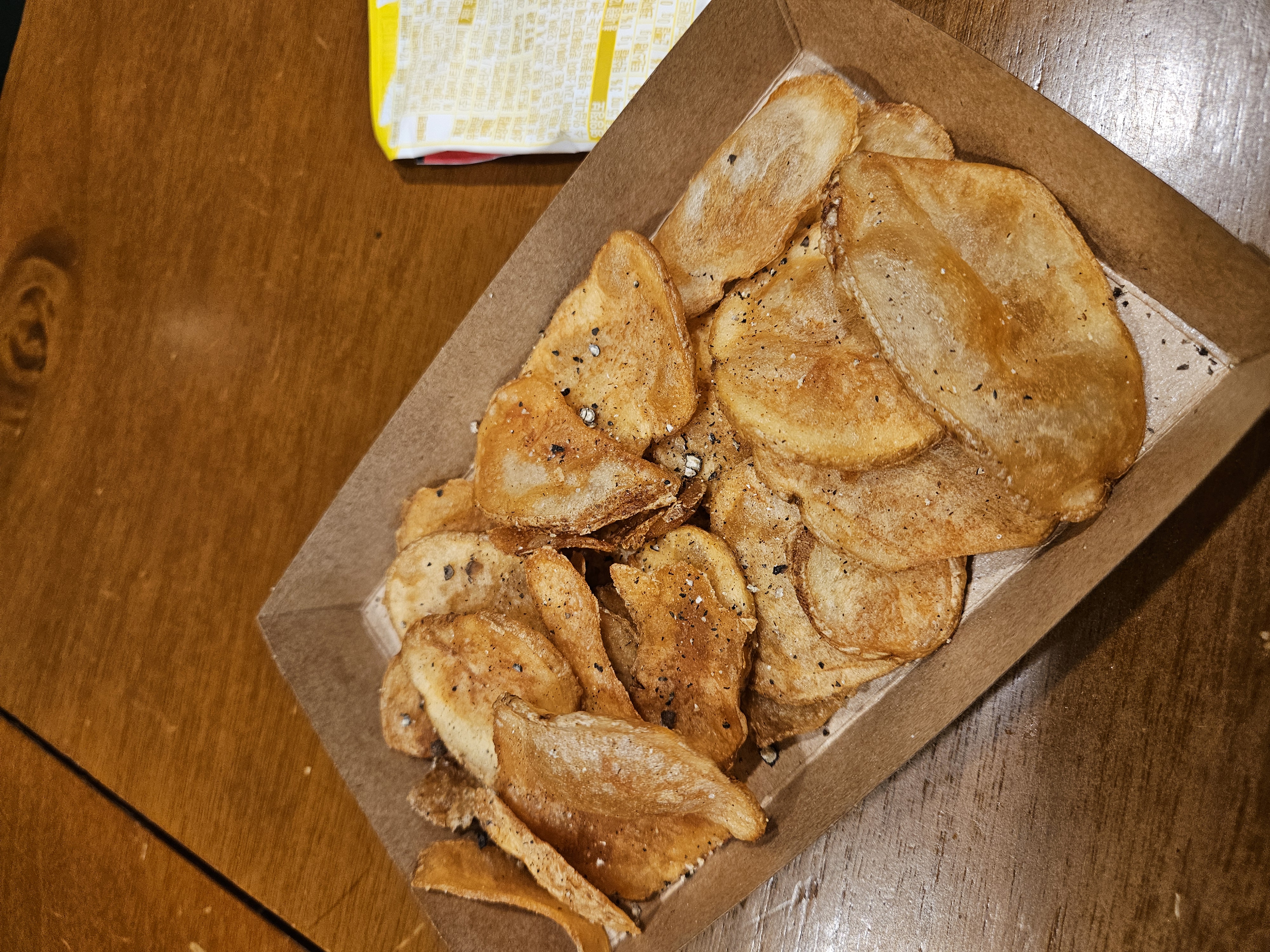 입구 쪽에 있는 무료 감자칩입니다