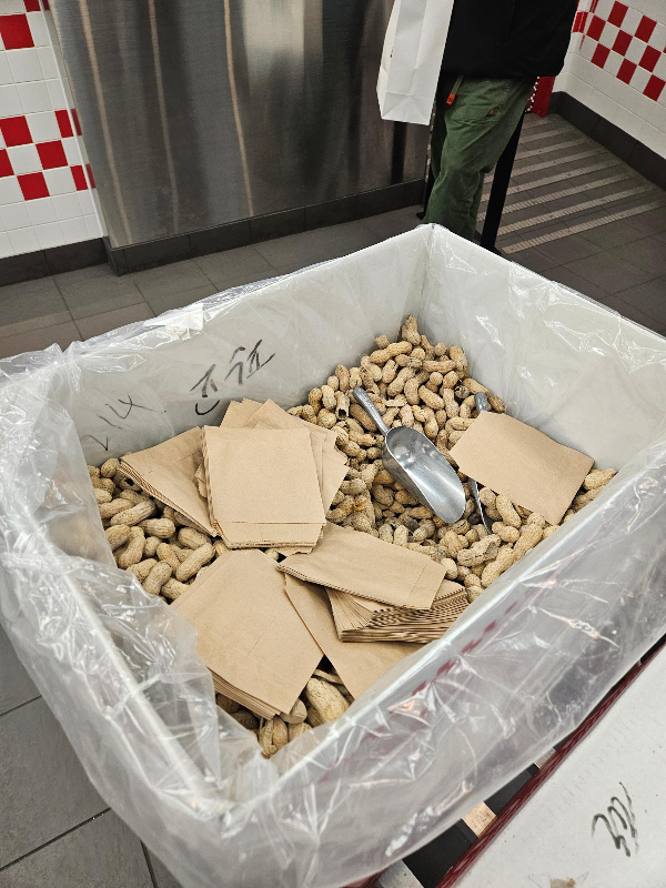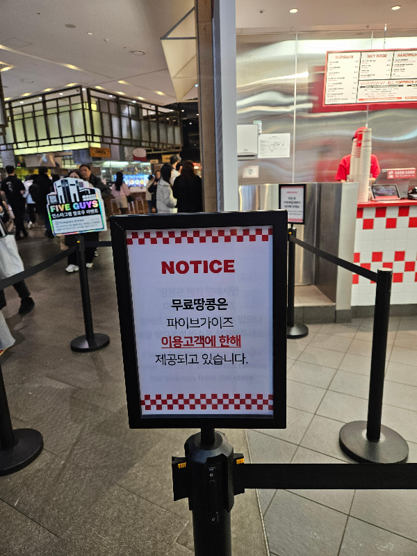 무료로 먹을 수 있는 땅콩은 꼭 매장 안에서만 먹기로 약속해요!