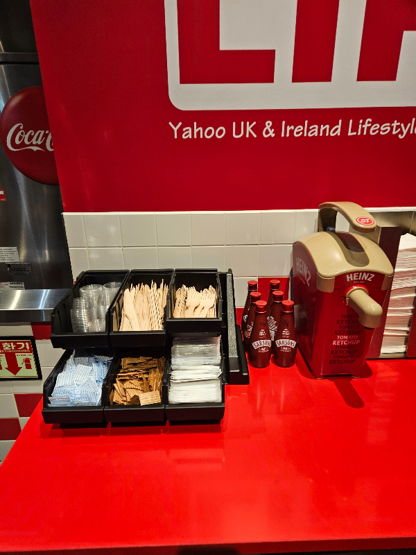 콜라와 케첩을 받을 수 있는 곳이 있습니다