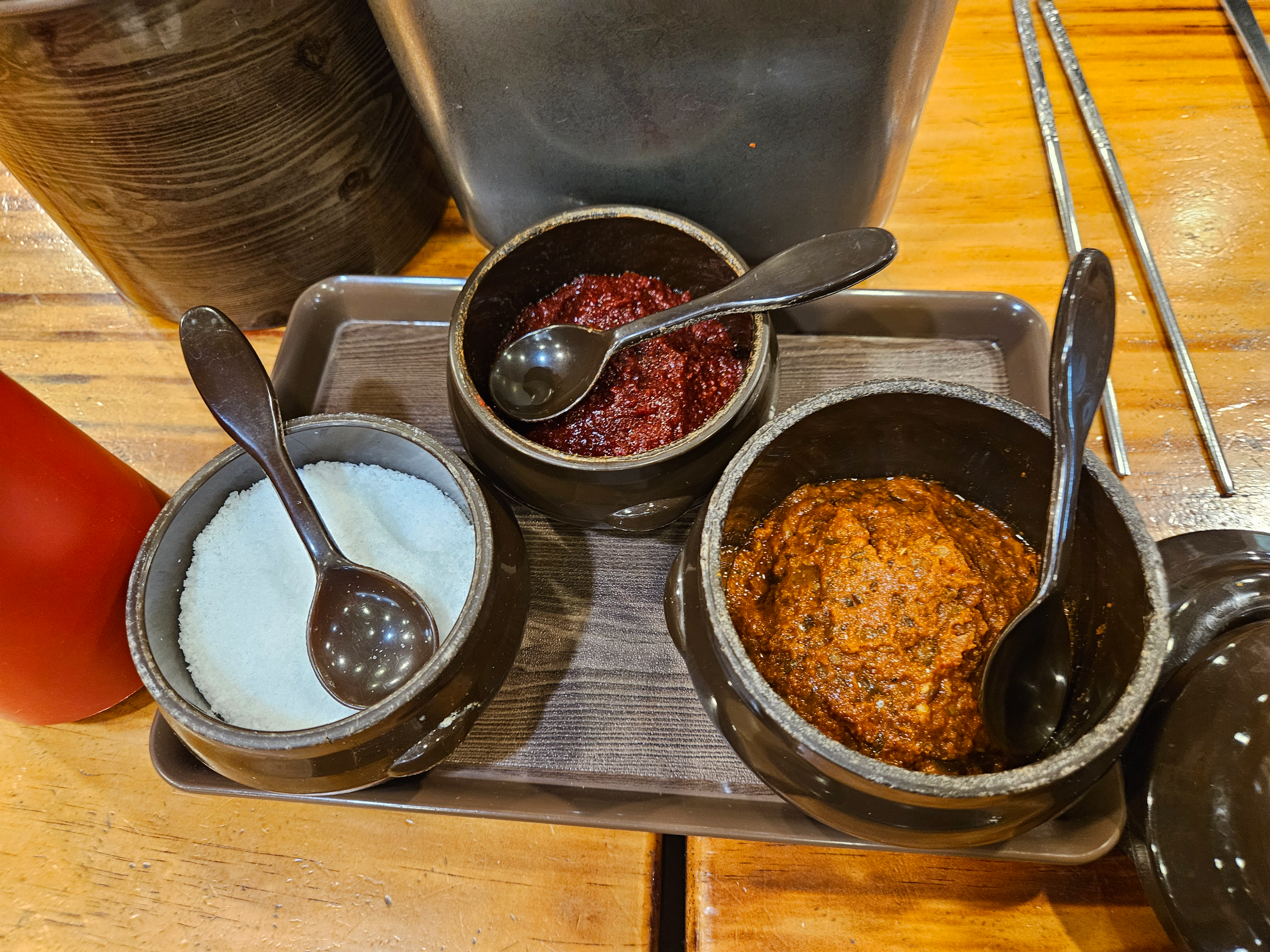 소금, 다진 양념, 쌈장이 있어서 필요한 만큼만 덜어서 드시면 될 것 같아요!
