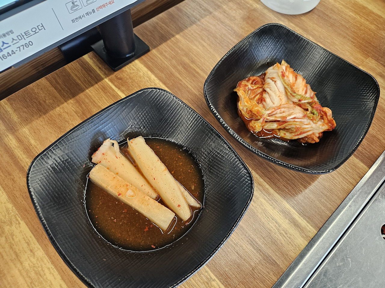 반찬은 깍두기와 배추김치, 동치미를 주셨어요