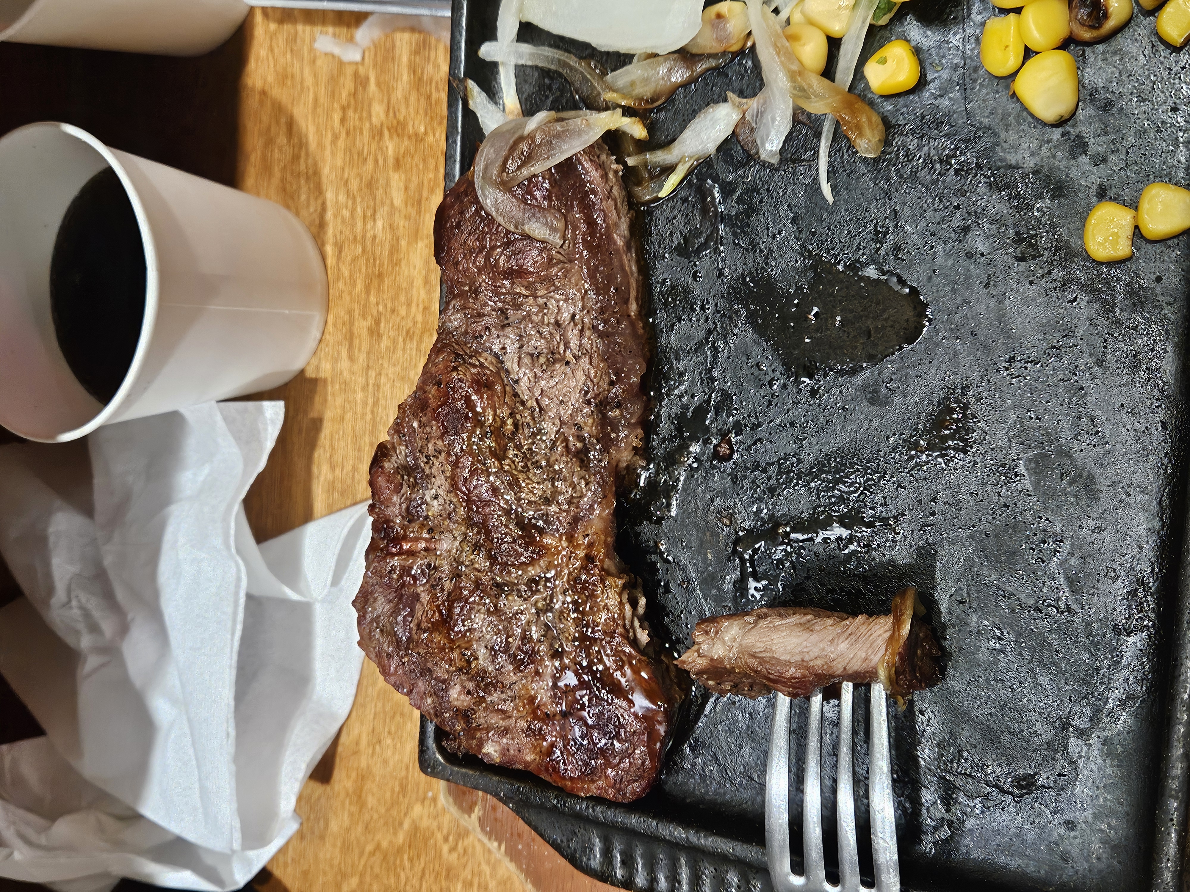 익힘은 완전 익혀서 나왔지만 그래도 이 가격이 스테이크를..?