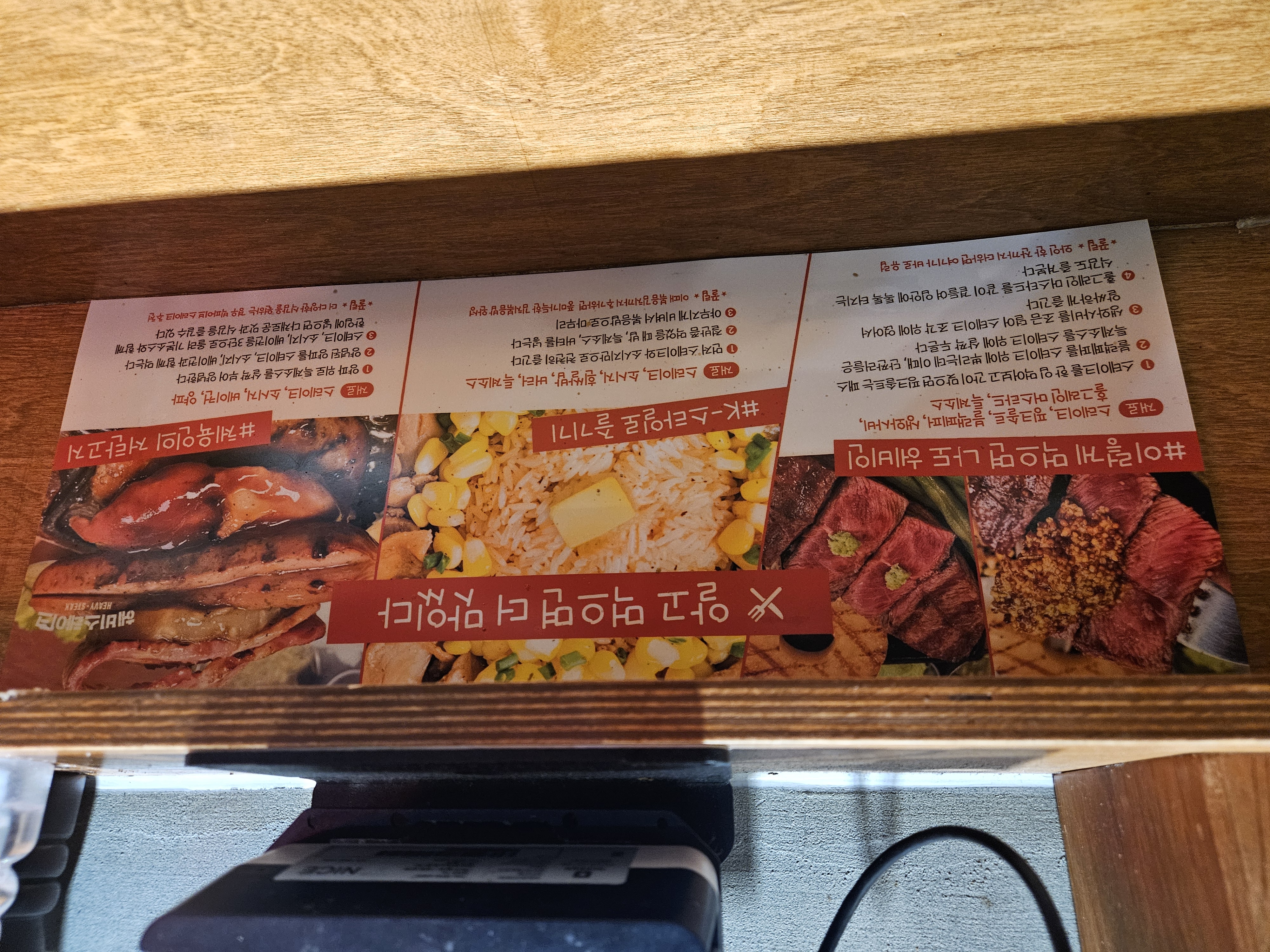저희 비프스테이크 레귤러 3개와 볶음김치, 흰쌀밥을 주문했습니다