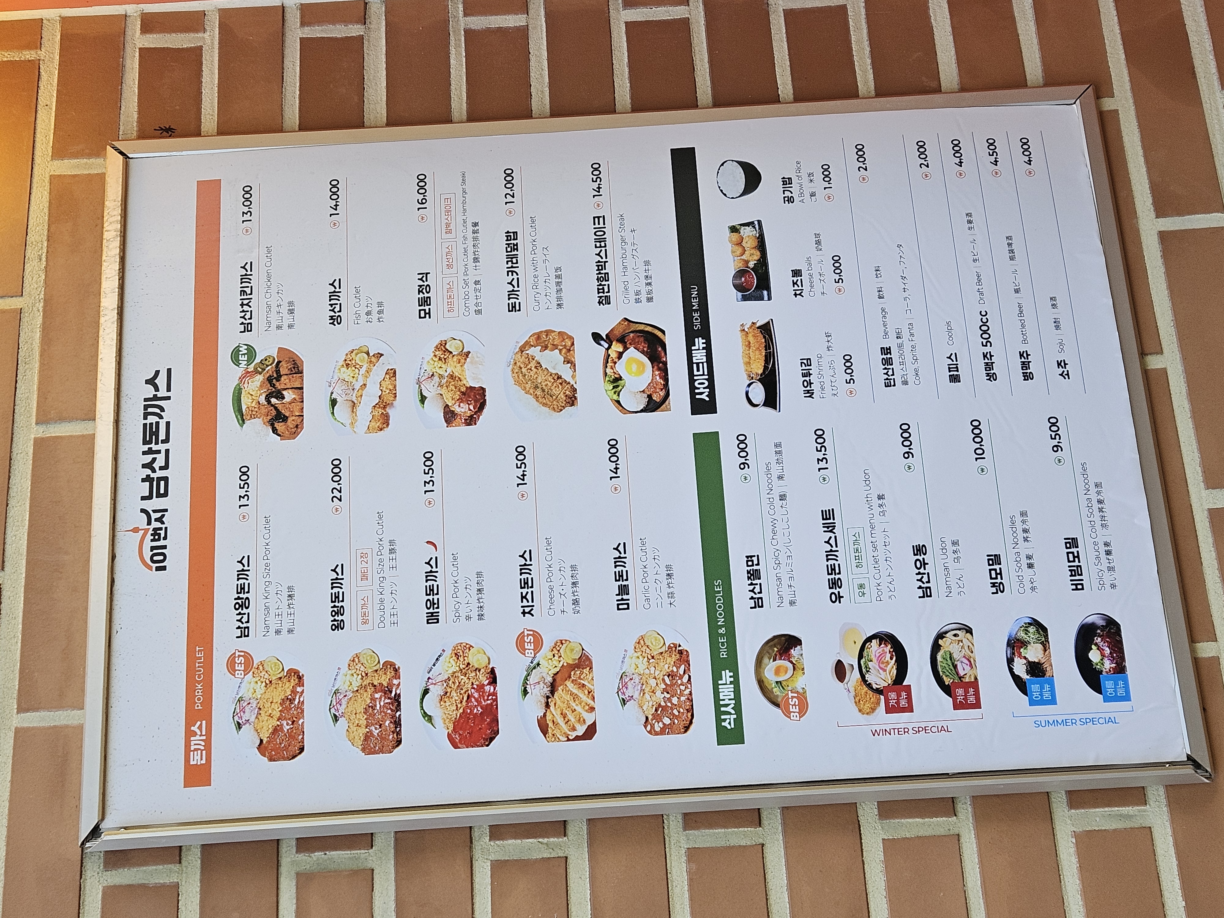 저희가 주문한 메뉴는 남산왕돈까스 (13,500원), 남산쫄면 (9.000원) 주문했습니다