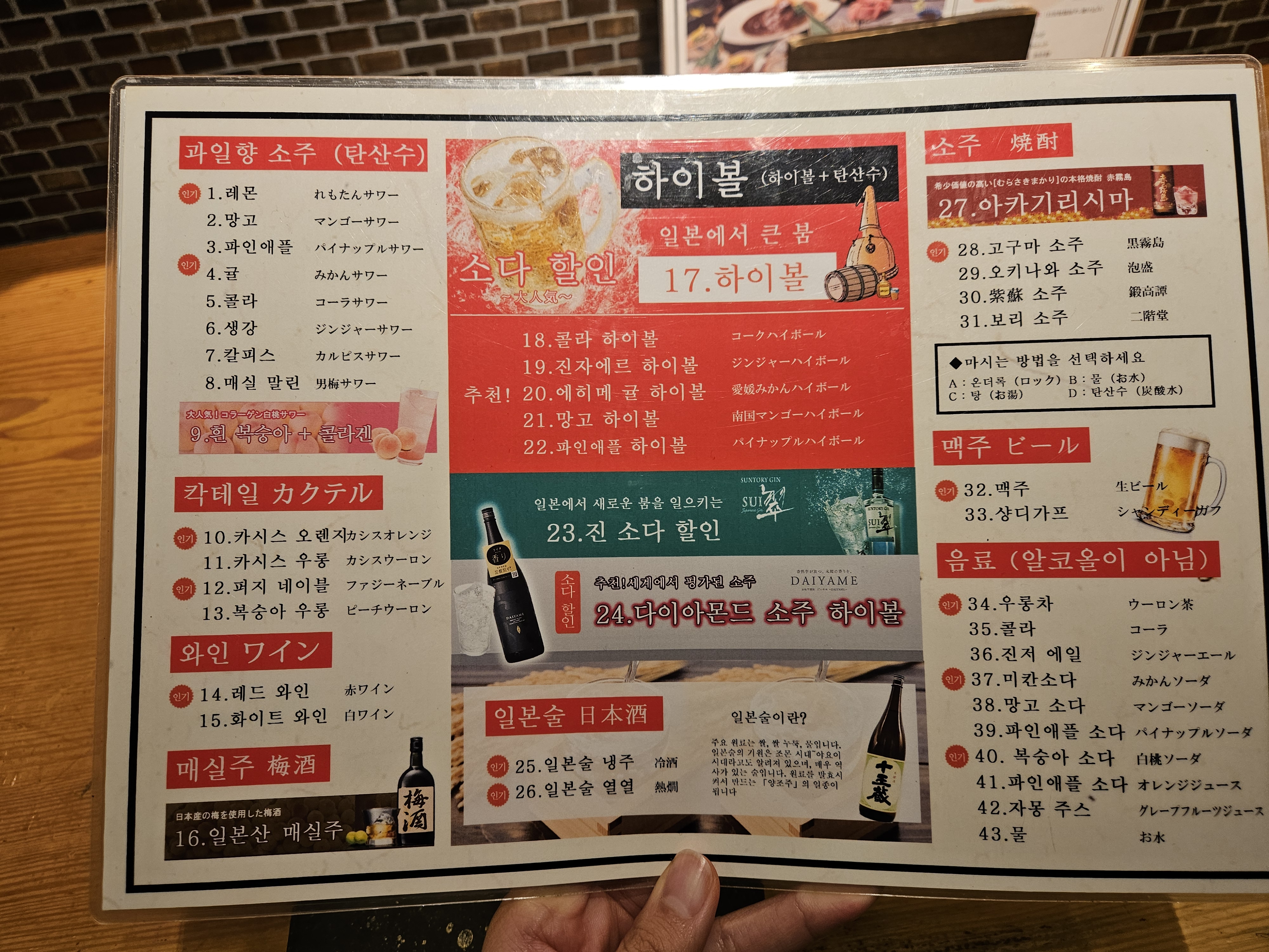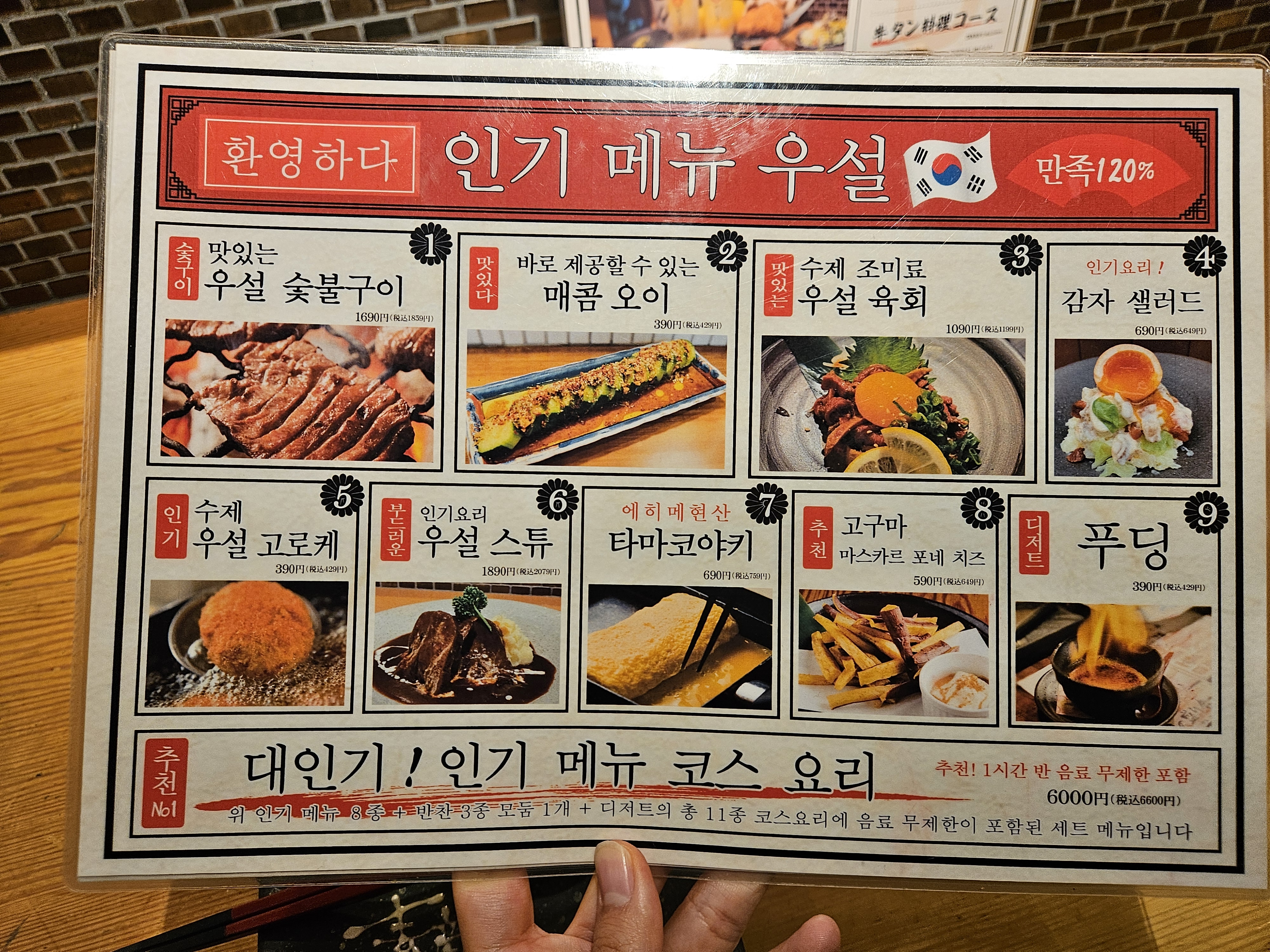 한국어 메뉴판도 따로 준비되어 있어요