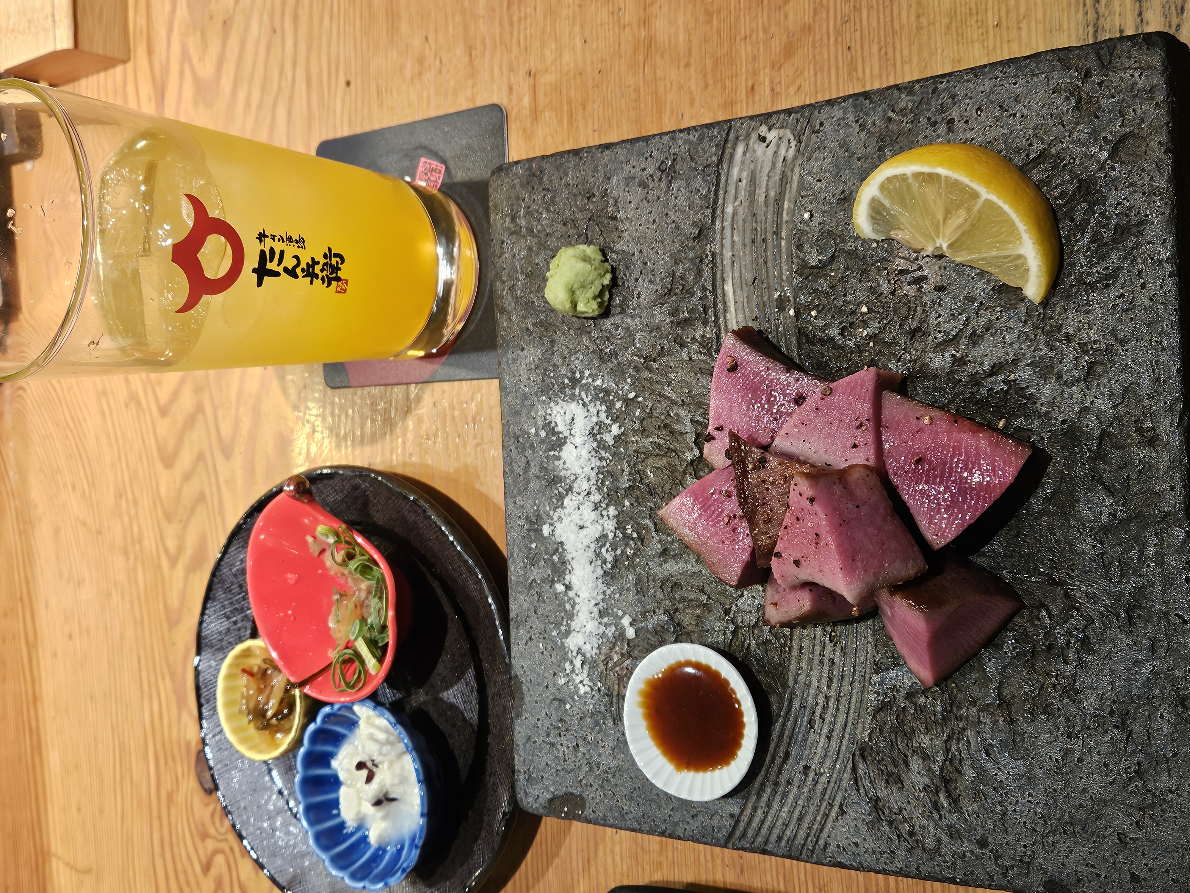 저희는 우설 숯불구이, 귤 하이볼을 주문했습니다
