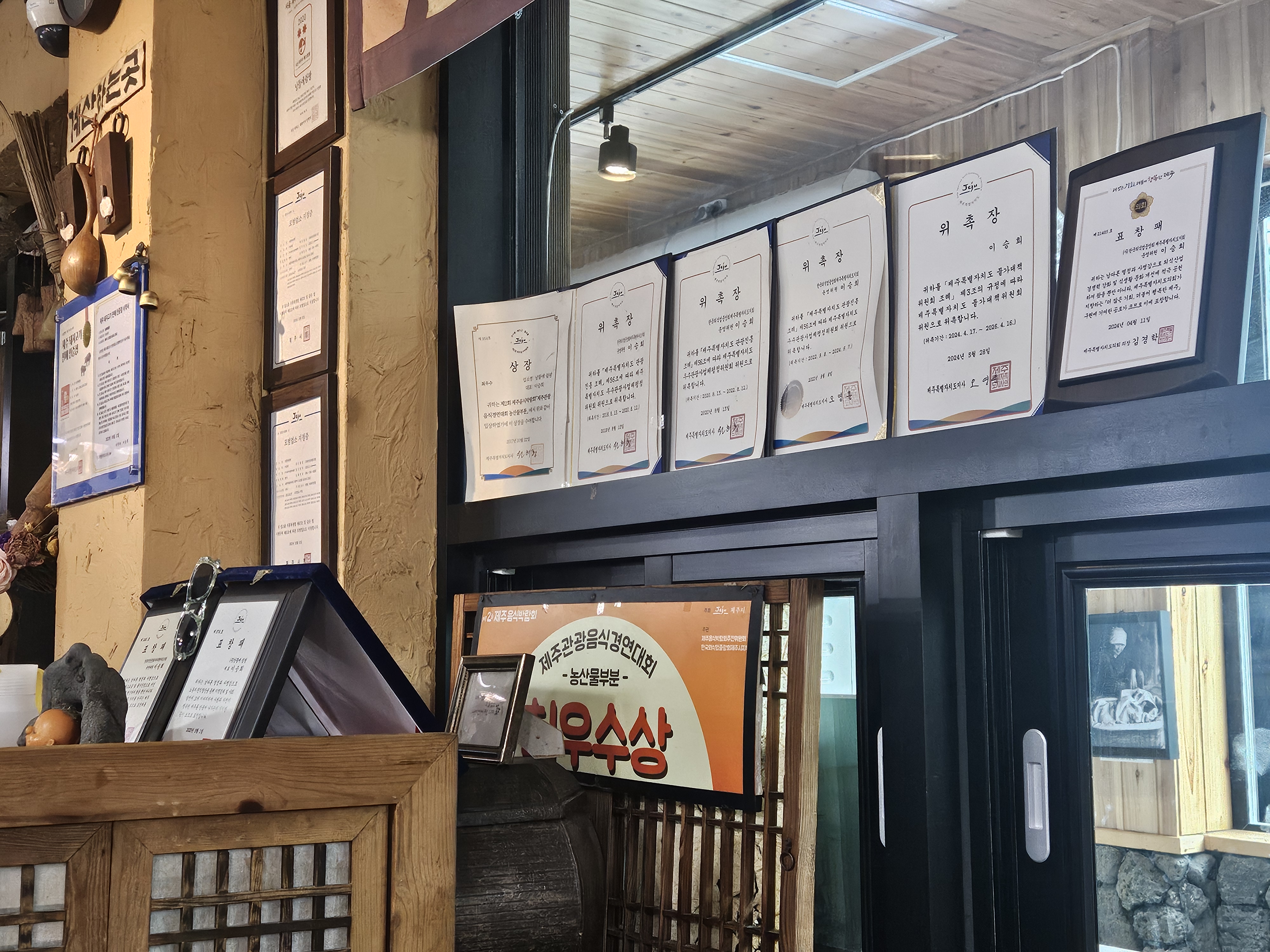 여러 상장과 위촉장, 표창장 제주관광음식경연대회 최우수상도 있었어요