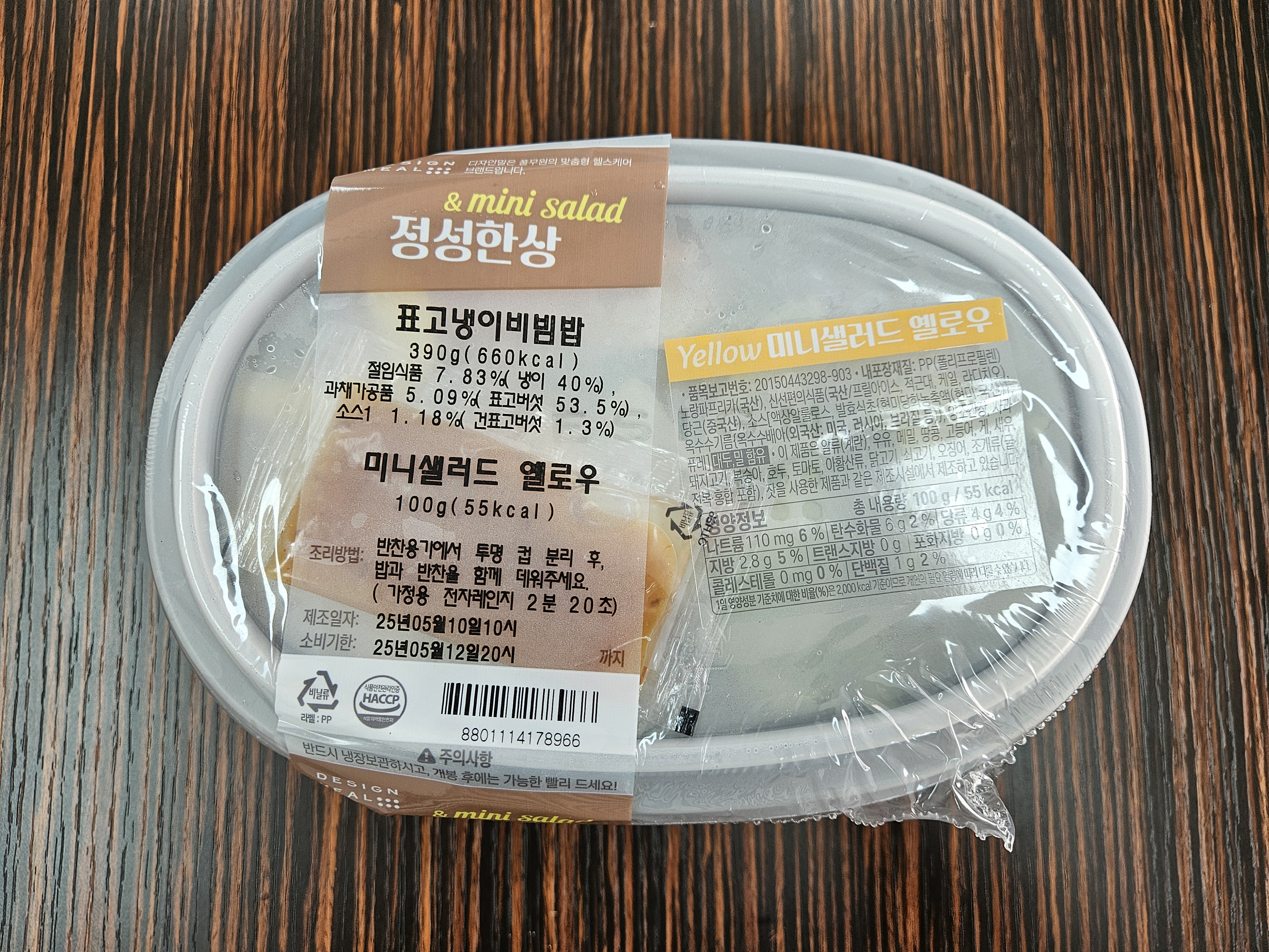 처음으로 받아본 도시락 메뉴는 '표고냉이비빔밥 & 미니샐러드 옐로우' 였습니다