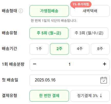 위의 사진처럼 배송유형부터 일까지 원하는 대로 선택할 수 있었어요!