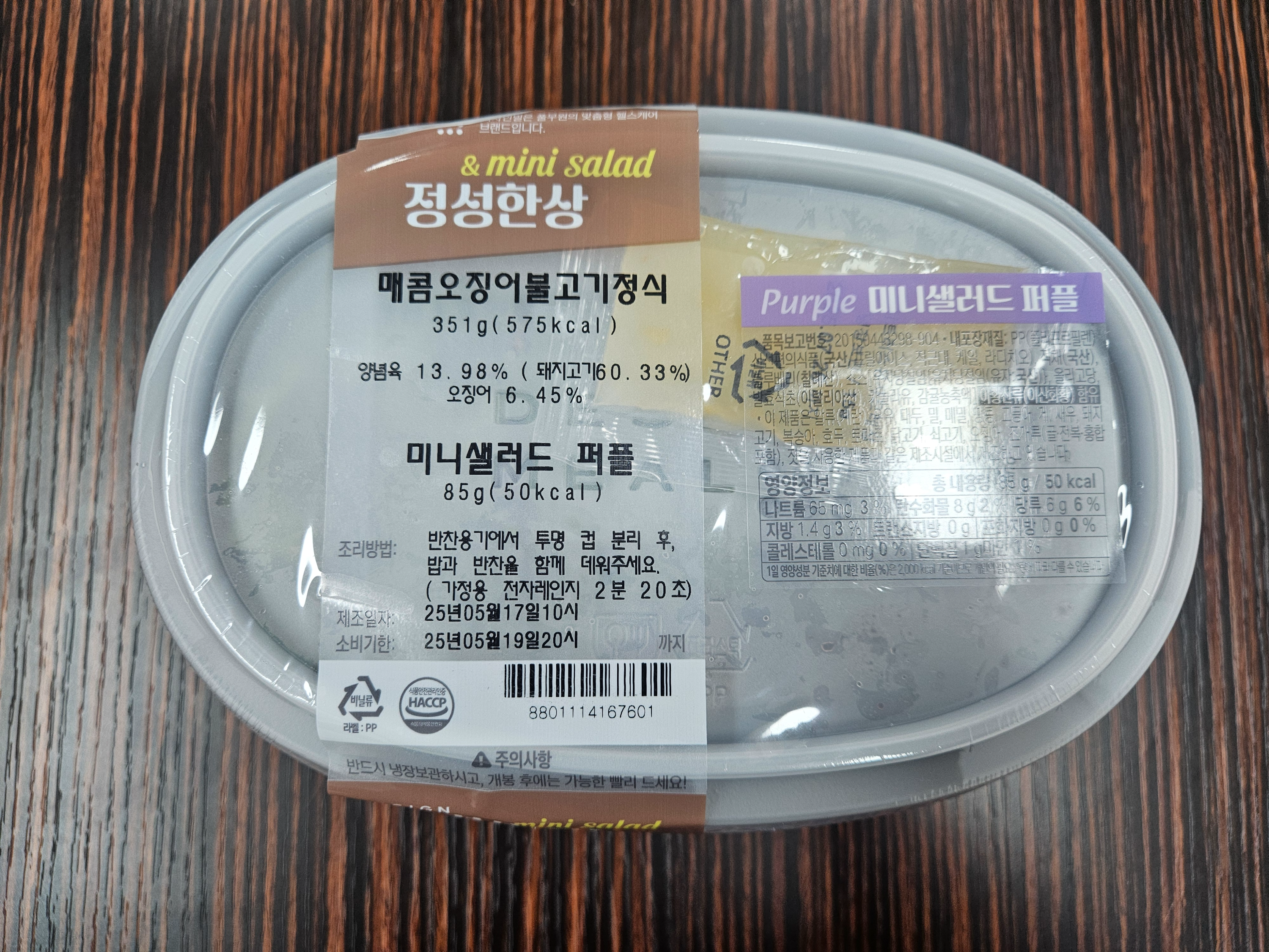네번째 식사는 '매콤오징어불고기 정식 & 미니샐러드 퍼플'입니다