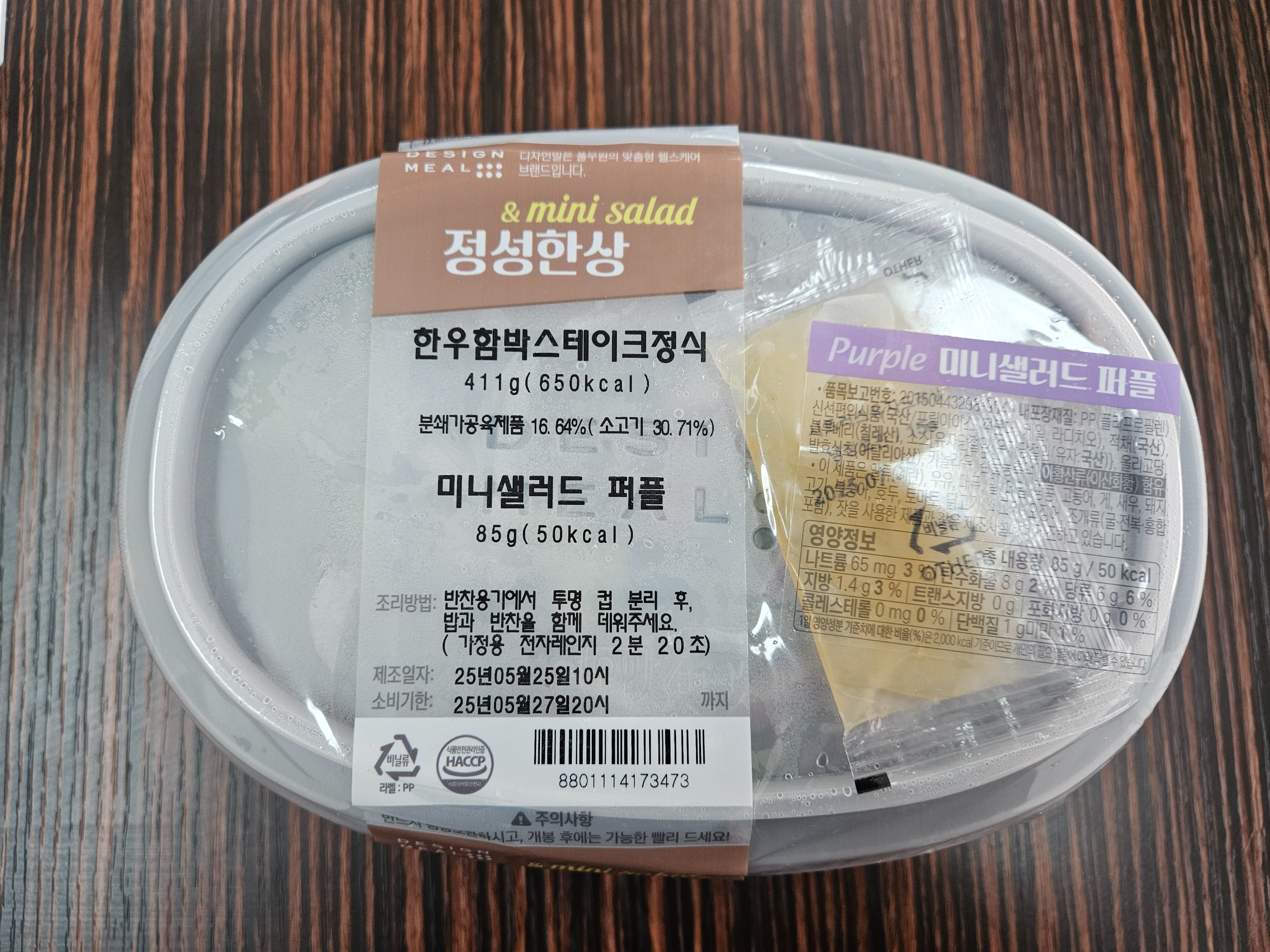 다섯번째 식사는 '한우함박스테이크정식 & 미니샐러드 퍼플'입니다